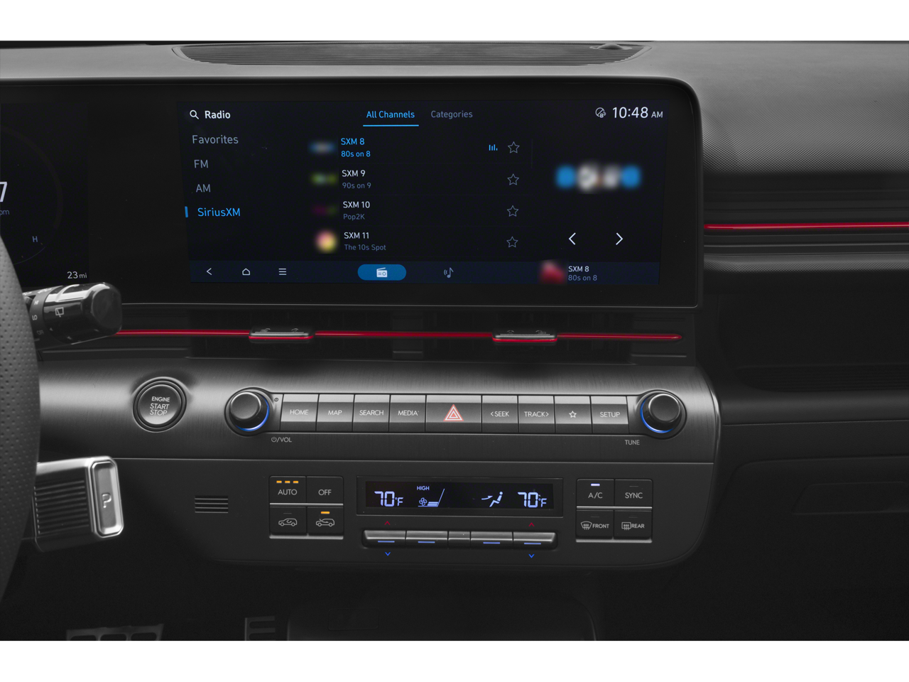 - Radio: AM/FM/HD Radio/SiriusXM w/Navigation -inc: Bose premium audio system w/external amp, 8 speakers, 12.3" touchscreen audio display, Bluetooth®, wireless Android Auto and Apple CarPlay compatibility, dynamic voice recognition, Wi-Fi hotspot, Bluelink connected car system, OTA software updates and USB connectivity